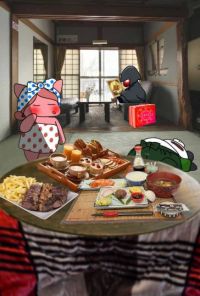 【姫を訪ねて三千里】生き物トピの続編 とある宿での朝食、三人三様 #画像 #天照大死婆神サマ #大熊猫 #ラン #姫 #写真 #ピン熊 #シバッグ #昭和な宿 お醤油つぎが未だ『馬』なのは、備品の大切に使っておられるのですね。 兄パン君が気に入られたお雑煮、「ウチの子、家では食べないのに、他所だと飢餓児みたいにモリモリ」のパターンか? もしくは、成長されて大人の味覚へと変わられたか?