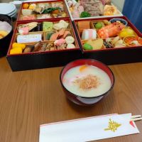 にゃむさん、豪華なお節〜!奥のお肉のお重に目が吸い寄せられちゃう!にゃむさんのお節にも緑色の小さな木の実みたいなのが入ってるじゃない?私のにも入ってて、初めて食べたのよ。若桃の甘く煮たやつよね?これが、へぇ、美味しいのかな?と食べてみたんだけど、なんとまぁ、素晴らしく桃!関東で買ったお節に入ってた記憶がないんだけど、関西ではメジャーなの?身近に瓶詰めとかで売っていたら買っちゃうわー。 白味噌のお雑煮も美味しそう。あれ?あんこ餅入れるのはどこだっけ? 帰省中のお出かけも楽しんでくださいね。 さて、お雑煮第二弾仕込むか〜。