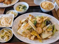 一昨日家族で食べた中華屋さん(豊楽園)のあんかけ焼きそばセット(1050円)です。 次男坊が以前友達と食べに行って量が多い!と言ってたのですが、コロナで店舗閉店になったので、私たちは行かないで終わった…と思ってたのですが、最近、市内に店舗あるのを発見! 嬉しくなって初めて食べに行きました。左上の唐揚げは家族みんなでシェアしましたが、あんかけ焼きそばなのに、右上のチャーハンが量が多くてびっくり! 久しぶりにマジか…と思いましたが完食しました(^^ゞ