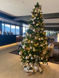 ココアねぇね、お部屋の皆様、Merry Christmas ❣️ ただ、あまりにも雪の多い聖夜になりました。 GRさん、こつこつさん、ココアねぇね、かなりの降雪量だとニュースで聞きました。ご無事におうちにいらっしゃる様子でほっとしています。 どうか、誰もひどく困っていらっしゃいませんように。 皆さんが楽しい聖夜をそれぞ迎えていらっしゃいますように(*´꒳`*) 画像は京都より。 クリスマスツリーの今メントの一部が竹細工でできています。 Merry Christmas.