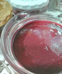 そんなチーママ姐さんに、冷凍庫に丸鶏を入れるスペースを作るために取り出したブラックベリーで炊いたジャムをお裾分けします。ポリフェノォール!! フープロにかけてるのでピューレ状です! (でもしぶとく種のつぶつぶは残ってる…)