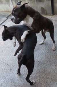 お互いを見つめ合い&右前肢同士がが触れあっている、 シヴァんこ&ガキんちょⅢ。 #シヴァんこ #ガキんちょⅢ キー坊への教育的指導その2 (撮影記録:2022年11月)