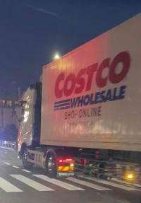 前出画像の別コマですが、こちらのトレーラーヘッドはシンプルなホワイトですね(^^) で、よくよく見たらタイヤの泥除けに『VOLVO』の文字が∑(゚Д゚) 今まで気づきませんでしたわ〜(^^;) #画像 #コストコトラック