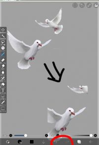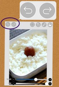 戻りボタン、丸で囲った場所(右上に拡大図)にあります。 呼び出した画像をキャンバスいっぱいに拡大しても、位置は変わりません。 スマホでの作業画面ですが、タブレットでも同様にしていました。 何か作業をすると『↩️』が現れ、『↩️』を押すと隣に『やっぱ戻るの止めた』ボタン(逆さ↩️)が出て来ます。 ↩️ボタン1回押しで直前の作業、2回押しで更に1つ前の工程に戻る仕組みになっています。 #画像 #ハウツー