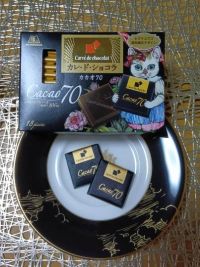 ちょっと独特の世界観が広がってそうなイラストに惹きつけられます!ムーミンのソーサーにもベストマッチしてオシャレ〜✨カカオ70%頂きま〜す♡