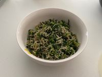 皆さま、おはようございます。 今日はますます暖かくなりそうですね(^^;; 私は花粉症の症状がどんどん酷くなってます。 症状が酷くなった時に飲む薬ももらってますが、これを飲むと体が怠くなるのでなるべく飲まないようにしています。 毎年なんとか飲まずに済みますが、今年は飲まないといけないかも(><) あまえびちゃん♡ ごまたまご、美味しいですよね(^^) 8日だけの数量限定でした。 出会えてラッキーです✨ あまえびちゃんもくしゃみ連発ですか。 今年は花粉の飛散量が多いので、アレルギーがキツくない人にも症状が出てくるのかも知れませんね(・_・; 昨日はJAの朝市に行ってきました。 小さい大根は2本で120円、ほうれん草・小松菜・菜の花はそれぞれ100円でした(^^) 大根の葉っぱがめっちゃ生き生きしてキレイだったので、ちりめんじゃこと一緒に炒めてご飯のお供を作りました♪