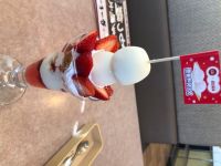 くんたまちゃん♡ いちごパフェの上に雪見だいふく♡ 美味しそうですね〜(*^^*) 旗がカワイイ♡