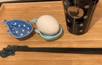 ああ〜! Seriaで見た時には醤油皿だと思ってましたが、 たまごを載せる用の皿だったんですね!! 私の目はフシアナでした(笑) 箸置きも可愛いです♡