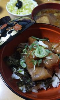 お夜食にマグロの漬け風小どんぶりを。 飲んだ後のしめにどぞ。