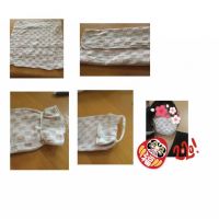 簡単にできるのでコラージュ手順を 作りました。 非常用タオルは使用後再利用 お洗濯している状態です。 三つ折り(下から折って上からかぶせる折り方 ゴムを輪にして端から通す 端を折る マスクをはめ自分の顔サイズ に合わせ端を微調整して出来上がり!