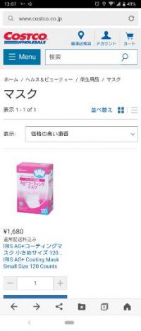 オンラインのマスク、画像を引き伸ばすと、♡とIRISがアイリスオーヤマのマークに見えるので、関連会社でしょうか。 IRIS AG+コーティングマスク 小さめサイズ 120枚入り1680円
