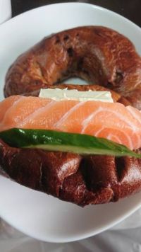 メープルベーグル♥️ メープルが袋の外まで香るから【甘々】を想像しますが、【ほんのり甘】なので色々と合うと思います。温めただけでも美味しいので、色々と試す前に無くなりそう(笑)
