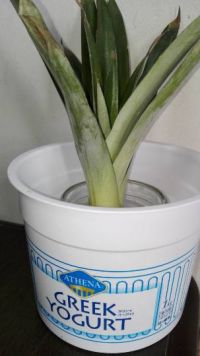 昨年からトライしては失敗してるパイナップルクラウンからの栽培。暖かくなってきたからトライ再熱です。 マンゴーとアボカドの種を育てるのも面白いですよ~。マンゴーは最高で20cm(←もうありません)、アボカドは細いながら1mくらいになりました。(台風が来たら避難場所に困るっ) 早くパイナップル、根っこが出ないかな~(^.^)