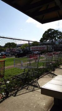 私は昨夏ハワイ(イヴィレイ店)で同じ様にカートにスッポリ収まっている女の子?18~20歳位の現地の女子が店内でビーサン履いたままカート内に『デンッ』とあぐらをかいているのを間近で見ました。日本では小さな子供以外が乗っているのを見たことが無かったので、くちをアングリあけてガン見しちゃいました‼ 私は先にイヴィレイでその様な状況を見たので、今回の書きこみを見て『日本人にも居るんだ‼』とまたまたびっくりしました。 この写真、その時のインコスした帰りのバス停で撮影したものです。 あまりにも場外放置カートがたくさんあったので撮ったんだと記憶しています。 コストコのトラックの向こう側の建物がイヴィレイの店舗で、向かって左のコストコのトラックの更に向こうの方に出入口があって、ここのバス停はそこそこ離れた場所に有るのですが、 写真に写りきらない程の放置カートが金網つたいに無数にありました。 日本だけでは無く、万国共通でマナー・ルールの問題点が色々有るんだなぁと思いました。