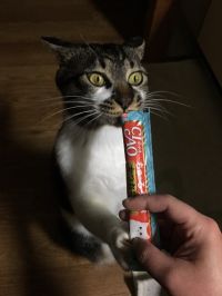 目ん玉ひん剥いているケモノの写真を投稿した者です。 ちゅ〜るって塩分が高めなんですね⁉︎ 情報、ありがとうございます。 ウチのケモノは、普段はオヤツに興味を示さないのですが、ちゅ〜るの時だけは豹変します。 毎日ではないものの、爪切りやお留守番のご褒美に1本与えています。