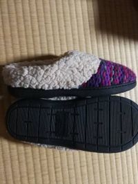 箱に、woman's memory foam slippersと書いてありました(^_^;) スリッパだったのですね(笑) でも、indoor outdoorとあるので、どちらでも大丈夫そうです(*^^*) 私はちょっと玄関掃除したり、外履きとして使う予定です。 頑丈そうなのが伝わるかしら?ちょっと分かりにくい写真でごめんなさい。