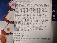 アスパラさん、はじめまして(〃∇〃) コメントありがとうございます。 ジンジャーハウスブレッド、小さなお子さんが食べられるか気になりますよね。 我が家の子供も小1と年少なので、同じ位の歳ですよね(^^) まだ箱を開けただけで、クッキーはまだビニール等でパッケージされているので、これを開けたらもう少し香りがするかもしれません^^; 子供も香りが強いと言っていました(でも拒絶するほどではなかったです) ただ、まだ食べておりませんので、実際に子供が食べられるかどうかはわかりません(>ω<) 出来たら、今週末に作って味見してみたいと思っています。 食べてみたら、どんな感じかまた書き込みます。 箱のラベルの画像をUPします。 この後に中身の画像もUPしますね!