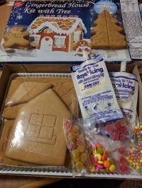 箱の中身の画像です。 画像左上:ジンジャーマン、右上:ツリー 画像左下:ハウス、右下:ロイヤルアイシング、飾り付け用のゼリー等 写真を撮るために箱から出したら、子供たちが「作りたい〜♪」と寄ってきました。 うまく作れると良いのですが…(;´∀`)