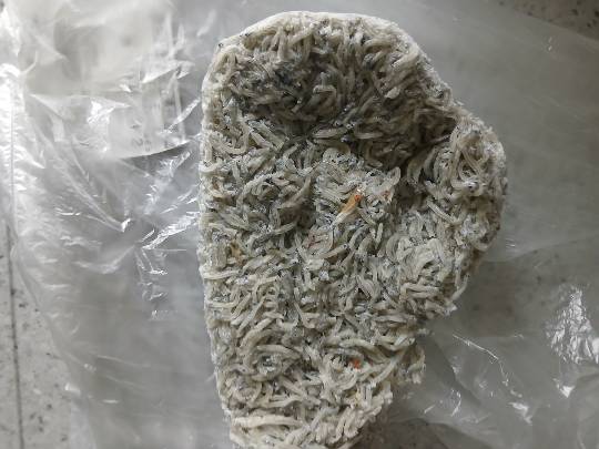 ちりめんじゃこ(シラスを干したやつ)は写真みたいなグレーになるけど、元の釜揚げシラスはコストコでいつも見るのと同じく白いですよ。最近コストコ神戸倉庫で見るのは瀬戸内海産が多いかな。