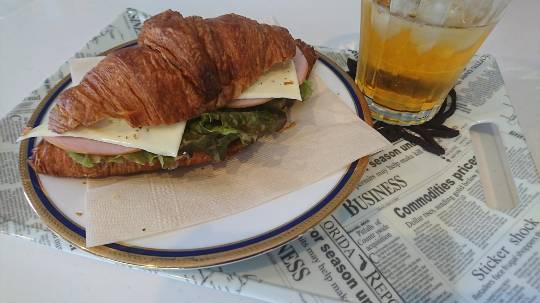 以前食べたコストコのクロワッサンサンドの写真があるので載せてみますね♪挟んでいるものはサニーレタス、ハム、スライスチーズです!とってもおいしいですよ(^^)