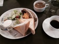 よしこ@幕張さんの早朝出発アドバイスがあったからこそペニーレインへ行けたんです! いつお店に入れるかわからないなら混雑する前に行っちゃえばと考えて開店直後を狙いました(^o^)/ モーニングプレート(写真)は充実の内容!3枚切りくらいある厚切り角食1枚分(超絶美味!)、ソーセージ、ベーコン、スクランブルエッグ、サラダ、果肉入りヨーグルト、バター(マーガリンでないのがポイント高し)。それにお代わり自由のコーヒーとスープ。どちらもお代わりしたくなる美味しさなので必ずお代わりすることをオススメします。これで800円とは満足度200%!完璧!近くにあったら頻繁に通うこと必至o(^▽^)o パンの陳列棚は一方通行ゾーンがあるので、もし買い忘れたら戻れない(並び直し?)、さらにレジ列は別にあり混雑時は大変そうだけれど、平日朝イチだったので割とルーズに移動を許してもらえました。 店舗の外観や内装のお写真を撮らせてもらったなかにオシャレで素敵なオジ様スタッフさん(もしやオーナーさん?)がいました!肖像権があるのでアップ出来ないのがとても残念(T . T) よしこ@幕張さんをはじめペニーレインに興味のある方は是非朝イチ狙いでモーニングプレートを食べてきて欲しいと思います。シンプルなパンが美味しいお店は間違いなく名店だというのが私の持論です(^o^)/ あと書き忘れていましたが、りんどう湖でお勧めのバウムクーヘン(冬季限定のジャージーチョコレートバウム)をお土産に買いました。りんどう湖のバウムクーヘンは生地か軽くて一般的なものとは別物ですね!とても美味しかったです(^^) オマケ。 よしこ@幕張さんにステキなダンナさまと言ってもらえたよと伝えたら照れてました。ありがとうございました(^^) 今回、夫にはシャンパンサプライズしてもらったのに何も返せず体調管理怠ったことを反省中(T . T) 次回は平日の日光を二人でゆっくりしたいと思います(^o^)/