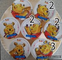 ファンの集いにも同じ写真で投稿しました。 使い回し御免です。 私が買った物は、7種類でした。数字が書いてない物は1個だけでした。 やっぱり、絵柄が何種類あるか気になりますよね~(笑)