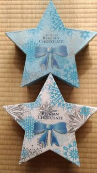 このチョコレートのことですかね? 箱が可愛かったので、とってありました(^^) #580617 Star Box Snowman Chocolste Belfine Decoreted belgian Chocolate 下の白色が、2015年のクリスマスシーズン 上の水色が、2016年のクリスマスシーズン (おそらく両方の色が、同時に売られていたと思います) 2017年は、発売されていませんでした。 同じメーカで、クリスマスバケツに入った丸いチョコレートも発売されていませんでした。 今年も今のところは、見かけていません(野々市倉庫調べ) それに代わる商品なのか、このメーカーからは去年はアドベントカレンダーが出ていました。 中身はスノーマンやトナカイなど、クリスマスに関する物が入っていました。 今年も細かいところまでは見ていませんが、同じメーカと思われるアドベントカレンダーが出ています。 私はこのチョコレートが、可愛くて美味しいので好きです。星形の箱やバケツの物がなくなって寂しいですが、今年もアドベントカレンダーを買おうと思ってます。 でも、子供さん達に配るには都合が悪いかな?