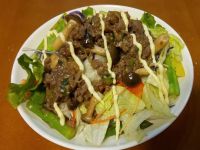 ベリーさんご紹介のラムシチューを作りたくて買ったラム肉ですが、当然一度で使えるはずもなく、今日は我が家の定番で佐賀のB級グルメ、シシリアンライスにしてみました。 いつもはプルコギビーフですが、こっちの方が好きかも。柔らかくてしっかりたべごたえあり、何よりラムの風味がシシリアンには合う。 今日は、ロメインレタス、トマト、ブロッコリー、コーン、パプリカ、ヤングコーン。きゅうりがあった方が食感が楽しいんですが、今日は高かったので。スプーンで食べやすい大きさの角切りにして、ご飯に乗っけて、しっかり目に味付けしたお肉を乗せるだけの、時短手抜き華やかメニュー。 私、身体が冷える感じがして生野菜が苦手なんですが、コレならいっぱい食べられます。 ベリーさんの誘いに乗ってラムを買った方、こっちもオススメです。