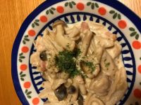 nonta 13様の真似して、カルボナーラ風で作ってみました。 マカロニの茹で時間は、私は長めが好みでした。 もちもちで美味しいです(^ ^) 今度はトマトソースで味付けしてみたいです。
