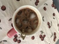 ここさん アイス…気になって作ってみました。 コップにコーヒー小さじ1 スイスミス三分の一 と少しの水を入れて良く溶けるほどにレンジでチン。そこにたっぷりの氷と牛乳を入れてみました。 味は美味しいですがスイスミスが少ないのと氷をたっぷり入れたせいか甘くない。。。(゚o゚;; スイスミスの量は多い方が美味しいかもしれないですね。 ちなみに作る前の原液をレンジで良く熱して溶かしておけば白いダマダマ?は出なかったです。チンの時熱してあぶくたってこぼれるので注意です。