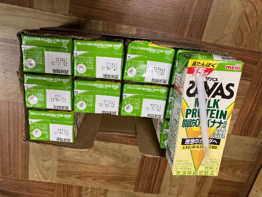 今日は全店クーポンで500円引きになっていた、ザバスのプロテインドリンクのバナナ風味を購入してみました。