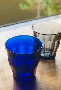 情報ありがとうございました。 色を迷ったのですが、迷った時はどっちもだ!ということで両方購入しました。 グレーには全品底シールなしで ブルーにはバーコードの入った小さなシール貼ってありました。 どちらの箱にもリミテッドエディション表記があったのですが、 65周年の刻印はグレーのみで、箱にも側面にその内容の記載があったのはグレーのみでした。 しかし1954年にピカルディ生まれました〜で 65周年ですのでデッドストックだったのかなぁー。 でも手に入ってラッキーです。 前に使っていた同じくDURALEXのプリズムで 一度だけ爆発割れを経験したことがあります。 食洗機の中で割れてしまってビックリ&難儀しました。 同期?の他のプリズム達は十何年経ってても 現役で丈夫なので、割れてくれないと新しいグラス使えないやんと思いつつ、愛着もあるので困っちゃいます。