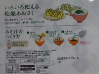 No.31246 1,468円 (1袋あたり 約29円) 内容量 0.6g ✕ 50袋入 香りも良く、味も美味しくいただきました。 あおさが好きな方には1袋だと量的に少し物足りないかもしれないです。 液みそと同時に発売された商品かと思います。 裏面には液みそシリーズを使用した場合の作り方も書いてありました。