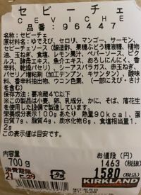 先日メルマガで紹介されていたセビーチェを購入しました。 サラダというよりは、魚介類メインのマリネに近い感じ。ドレッシングなのかシーアスパラガスなのかわかりませんが、少ししょっぱいです。あとペパーソースが入っている為かちょっとピリッとします。 エビは大ぶりのものがそのままゴロゴロ。サーモンは小さめ角切り。マンゴーはおそらく冷凍マンゴー。野菜はスライスされたセロリが一番多くて、そのほかにシーアスパラガスと紫タマネギ、パセリ。 元々セビーチェというものが好きだったので期待して購入しましたが、個人的には少し塩味が強く感じたので、冷蔵庫にあったミニトマトときゅうりを足して食べています。 白ワインのアテに最高(。-∀-) ※画像はミニトマトときゅうりを加えた後です