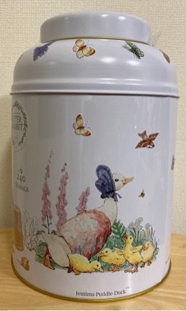 ピーターラビットの紅茶缶!可愛いですね!! わたしは洗濯してるのはハリネズミだなと思いました( *´艸`) でもコメントでタヌキなのかなと一瞬(笑) 前の缶の紅茶は何袋かお嫁に出してラスト一袋を消費中なのです… 自分でも欲しいし友人にもプレゼントしたいなぁ(^^)