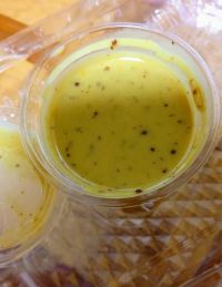 付属のマスタードソースです 肝心の商品の撮影を忘れました… せめてもとチキンレッグの長さを測ったら、だいたい13cmくらいでした
