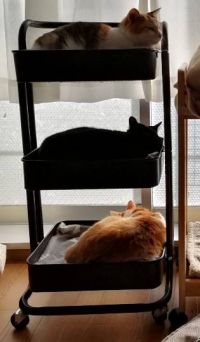 >きんさん 萌え萌えしていただき、嬉しいです(*^^*) 3段満席なのを眺めてほっこりしてます。 購入してよかったです。 もし、同じような用途を考えてる方いらっしゃいましたら、注意事項ですが、取手を手前に設置すると危ないです。 猫が乗っかる時に、取手を踏んで倒れる危険があります。 取手は必ず壁などに支えになる奥の方へ向けた方がよいですよ〜。