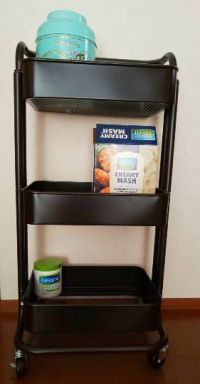 IKEAのトロリーワゴンを買おうか迷っていたら似たようなのがコストコにあって、しかも断然安かった。その辺のホームセンターにも類似品は売ってるけど、カゴ部分がプラスチックだったり塗装が安っぽかったり。 で、1台目を子ども部屋に置いたら使い勝手が良かったので、2台目買い足しです。息子が自分で組み立てました。それくらい簡単。 ニトリのミドルベッドの下にちょうどいい高さです。色が黒だともっと良かったんですが、チャコールブラウン?一見黒に見えなくもないので妥協してます。