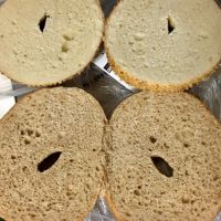 そう言えば、セサミベーグルはまだ画像が無くてむかーしコス子さんが探してた気がする??違ったっ け? て事で今さらですが画像載せてみます このベーグルはプレーンの表面にゴマを付けてるだけの様子。 肝心のごまは思ったより香りが薄く、とてもポロポロ落ちます。半分にカットしても食べてる最中もポロポロ数十個のゴマが落ちます。 画像の右手前、全粒粉?と思ったらベーグルの表面のゴマがハゲてますww袋の下にも落ちたゴマがたっぷり! 焼いたらゴマの香りが立つかな?と思ったけど、やっぱり控えめ。サンドイッチにしたら具材に負けちゃう感じ。でもプレーンとセサミがあったら、私はセサミを選んじゃいます。 ついでに、一緒に買ったハニーウィートベーグルは、全粒粉の影響でちょっと身が詰まって少し小さめ。全粒粉特有なちょっと酸味のある風味と味。セサミの方がふわっとして大きく味はプレーンに近い印象です。胡麻が変わると絶対にもっと個性が出て美味しくなるのにな〜 ベーグルの新製品ウェルカムです!次も楽しみ♪