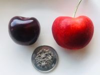 確かに…!大きい大きいと言いながらこの写真だと凄く分かりにくいですね、すいません(;´д`) 急いで500円玉を探したのですがお財布の中には見つからず…仕方ないので100円玉とスーパーで買ったアメリカンチェリーに出てきてもらいました。 一番大きな粒達は昨日子供達にもりもり食べられてしまったので、私が買ったパックの中では中粒くらいのものになりますが… これで比較になるでしょうか?500円玉には流石に届かないかな…? そしてやはり赤いものの方が甘いのですね、とても良い事教えて頂きました! 次回購入の際も赤いものが有ればそれを買おうと思います、にっきーさん、教えて頂きありがとうございます〓