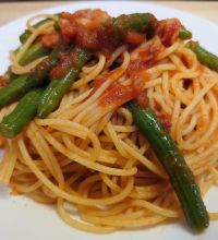 アラビアータ インゲンとベーコンを足しただけです 写真はパスタ2人分に1瓶ですが、やはりソースが下にたまることはなく全体的に絡んでくれます。