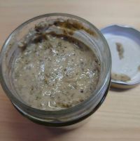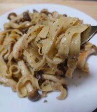 トリュフを開けてみました 家にあったしめじを追加 瓶1つ使うとレストランで出てくるようなソースたっぷりになると思います。 写真は瓶1/2と1人分パスタを絡めてみました。