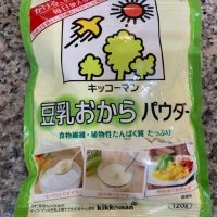 中身です。 ちょっとびっくりしました。 めちゃくちゃ細かな粉末です! きな粉より細かくて、見た目は高級和三盆。 スーパーのおからパウダーって、おからが乾燥しただけみたいな筋っぽいのしか見たことないんですが、こんな風にきれいな粉に挽いてあるものもありますか? 私が無知なだけかどうかはさておき、とても細かいので、水で戻して「おから」として使うのには逆に向いてなさそうです。 これはちょっと誤算でした。 飲み物などに混ぜるのには、モソモソしなくて違和感少なくていいです。おから独特の匂いが少ないのも、混ぜるものの風味を邪魔しなくて使いやすいと思います。お菓子の生地にも入れやすいです。