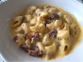 ソースたっぷりですよね。 チーズ好きにはたまらない!です。 沢山入ってるし、何回かに分けて食べようかな、と、お昼に出したら、 おかわりコールであっという間に完食しました。 母はもう少し食べたかったかも。 トロトロの濃厚なチーズソースがたっぷり、太めの歯応えのあるマカロニにからんでとっても美味しいです。 カナディアンベーコンの薫香がアクセントになって、いくらでも食べられるー危険ーー。な一品です。 茹でたブロッコリーやアスパラを入れると、少し優しい味わいになりそうです。 我が家では久しぶりに大ヒットのデリカでした。 また買います。