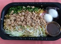 フライパンで温めてみました。 薄く油をひいて麺と挽き肉を投入。焦げ目が軽くつく程度焼きました。千切りねぎ、青ねぎ、半熟玉子、ソースはお皿に盛ってから乗せてまぜまぜ。 唐辛子のピリ辛と半熟玉子で美味し~い❕挽き肉も良い仕事してる(笑)でも辛口なのでお子さまは無理かも。これはビールにきっと合いますね。今日はコストコの激安価格でゲットしたボジョレー・ヌーボーでいただきました。 麺はやや太麺でもちもちです。でもちょっと柔らかいのが私的に残念~(๑´Д`ก)