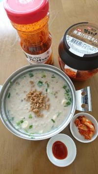 遅い朝食や お夜食に良いかも! 牛骨コムタン 韓国クッパの素 日本のお茶漬けと同じく温かいご飯にクッパの素をふりかけて 熱湯を注ぎ入れ 混ぜるだけです♪ 山椒をふりかけて食べると もっと美味しいです(*^.^*) 特に牛臭さもなく 味はインスタントにしては クオリティ高めに思います。