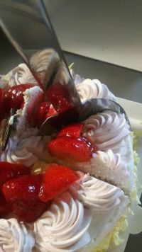 買いましたよ~〓 真ん中のクリ-ム大丈夫でした❗ あっさり食べられました 美味しかったです ケーキのカットはもちろんアレを