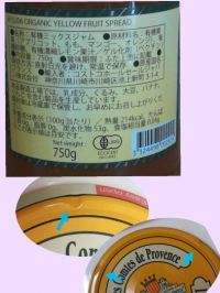 オーガニックフルーツジャム←レシート名称 有機ミックスジャム←瓶のラベルの名称 ORGANIC YELLOW FRUIT SPREAD←瓶のラベルのアイテムナンバー横の表示 どの名前が正確なのかわかりませんが、♯15206 648円のジャムです。 アプリコット、もも、マンゴー、オレンジが入っているのですが、オレンジの皮が入っているので、マーマーレードの様な味わいです。 家の場合、フルーツアレルギーの家族も、特に口の中に違和感なくヨーグルトのお供にしています。 製造は、コス子さんが以前に紹介してくださった、オーガニックいちじくジャムと同じフランスの会社のものです。