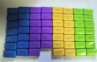 画像追加します。 1枚の大きさ→約2.2cm×3.7cm ・ミルク(青) 14枚 ・ダーク(紫) 13枚 ・ヘーゼル(黄) 14枚 ・ピスタチオ(緑) 14枚 計55枚 今ピスタチオ食べてみましたが、ミルクチョコの足がなかなかに甘いです。