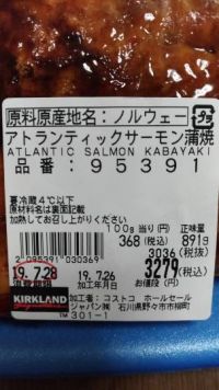 明日は土用の丑日。 ウナギを食べたいけど、国産、海外産ともお高くて手がでない(>。<) 牛肉(丑)かと思いコストコに来てみたけれど、やっぱりウナギと同じ理由でなんだかな~ あー、クーポンが出ているサンマで誤魔化すか!なんて思っていたら、こんな商品を見つけてしまった(笑) ちょっとお高いし、どうなんだろと思ったのですが、興味の方が先にたって買ってきてしまいました(^^;) 土用の丑の日前日だけど、味見に少し食べてみたら、すごくて脂がのっていてウナギみたい! ちょっと皮がかたいかな?と思いましたが、許容範囲。軽くグリルであぶればいい感じになりそうです。さて、家族にウナギといってだしたら、どんな反応するかな(爆)